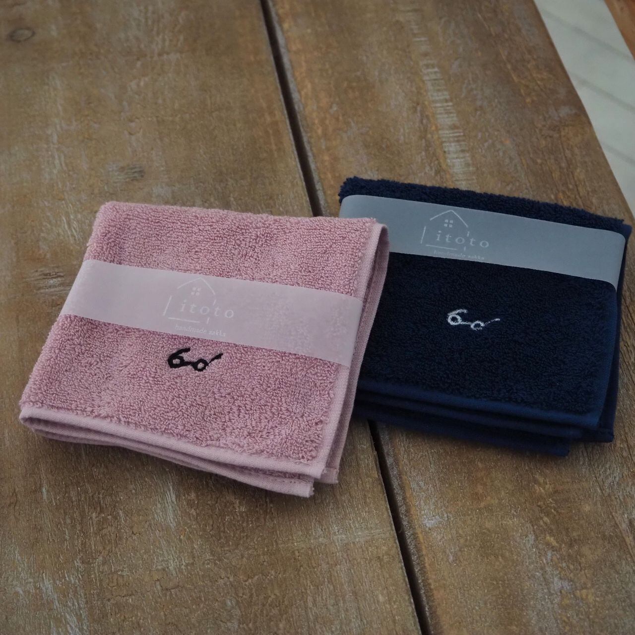 ふわふわとした優しい手触りの小ぶりなサイズ感の今治タオルにitotoのオリジナルのワンポイント刺繍が入ったタオルハンカチ。