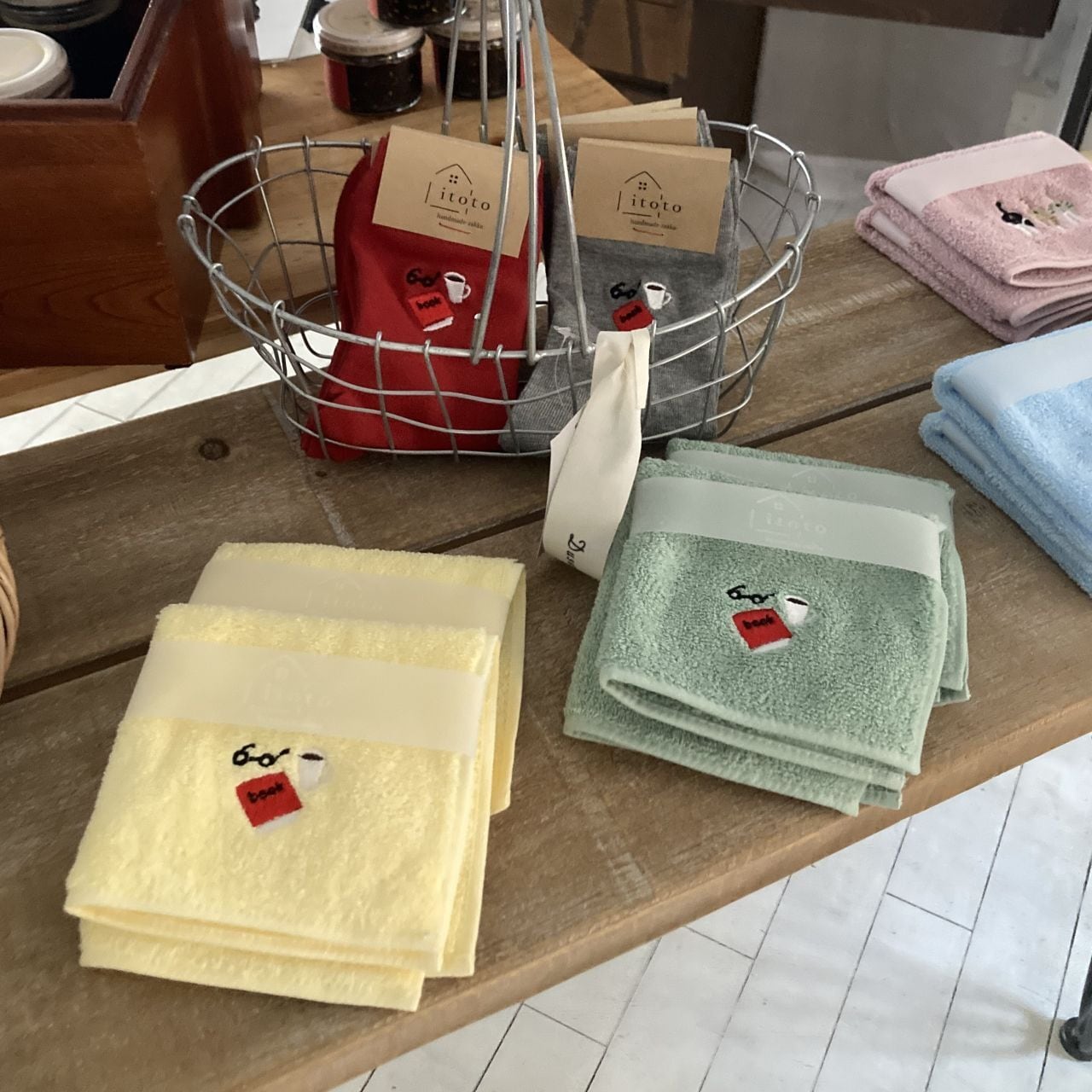 ふわふわとした優しい手触りの小ぶりなサイズ感の今治タオルに、itotoのオリジナルのワンポイント刺繍が入ったタオルハンカチ。