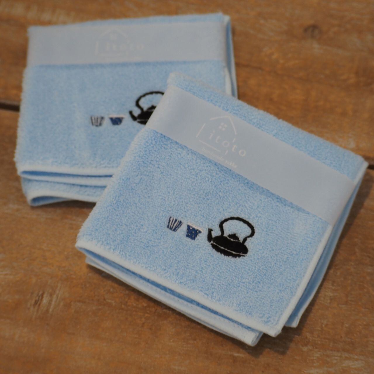 ふわふわとした優しい手触りの小ぶりなサイズ感の今治タオルに、itotoのオリジナルのワンポイント刺繍が入ったタオルハンカチ。