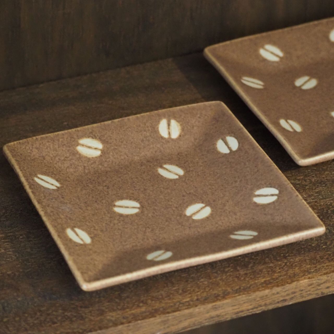 かわいらしいコーヒー豆柄の美濃焼のスクエアプレート。