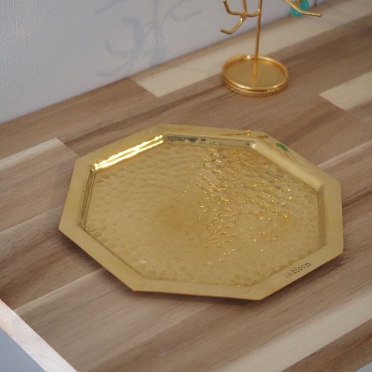 アクセサリーや小物の収納・ディスプレイに使える真鍮製トレイのオクタゴン(八角形)タイプ。