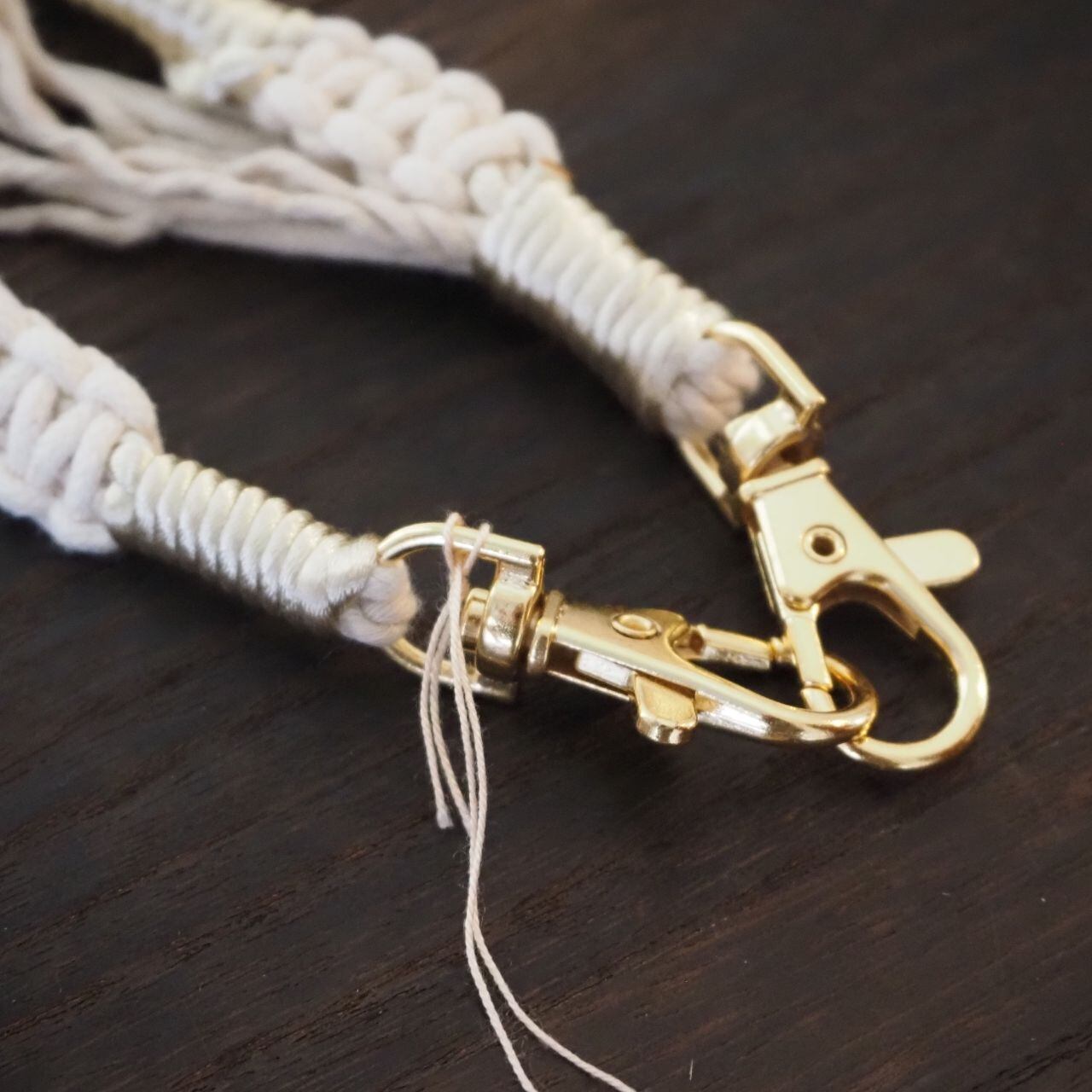 柔らかなコットンコードで編まれたマクラメのハンドストラップ。