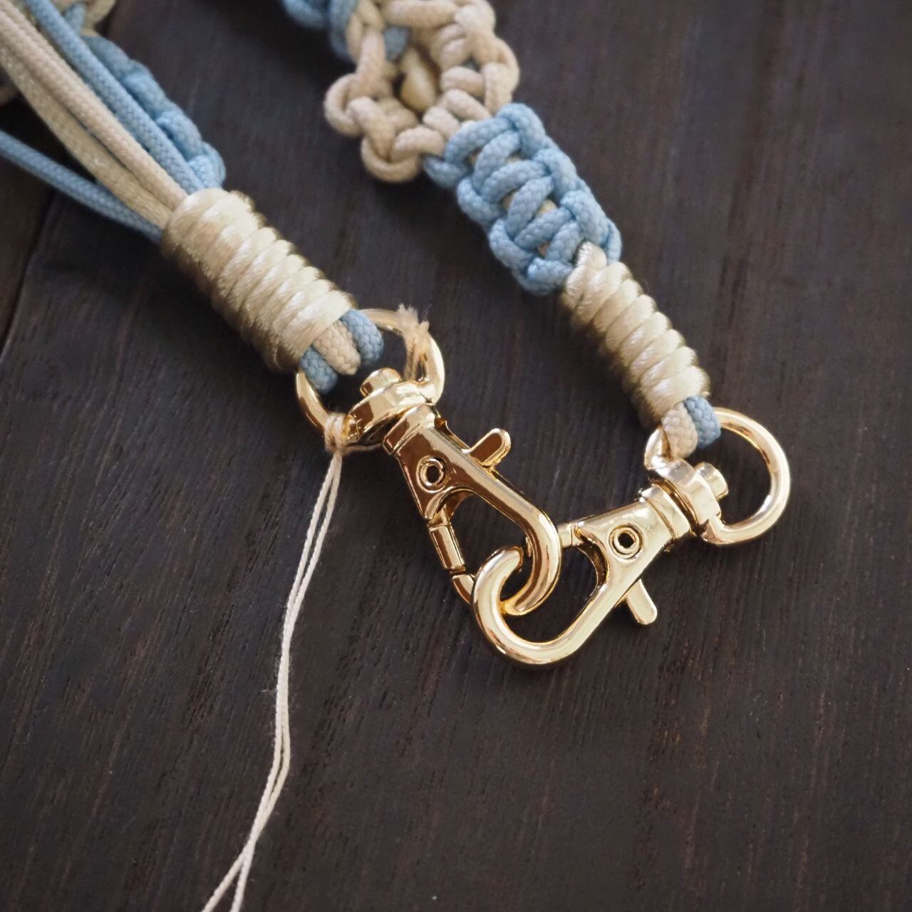 ポリエステル製のパラコードで編まれたマクラメのハンドストラップ。