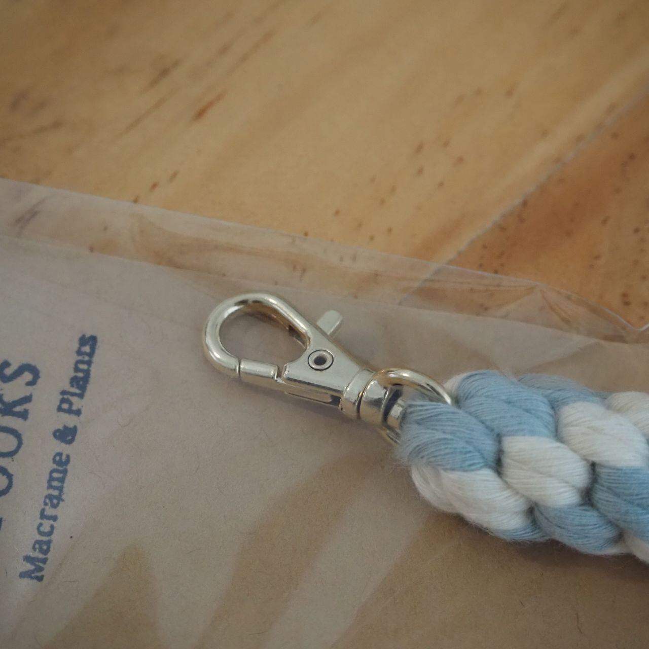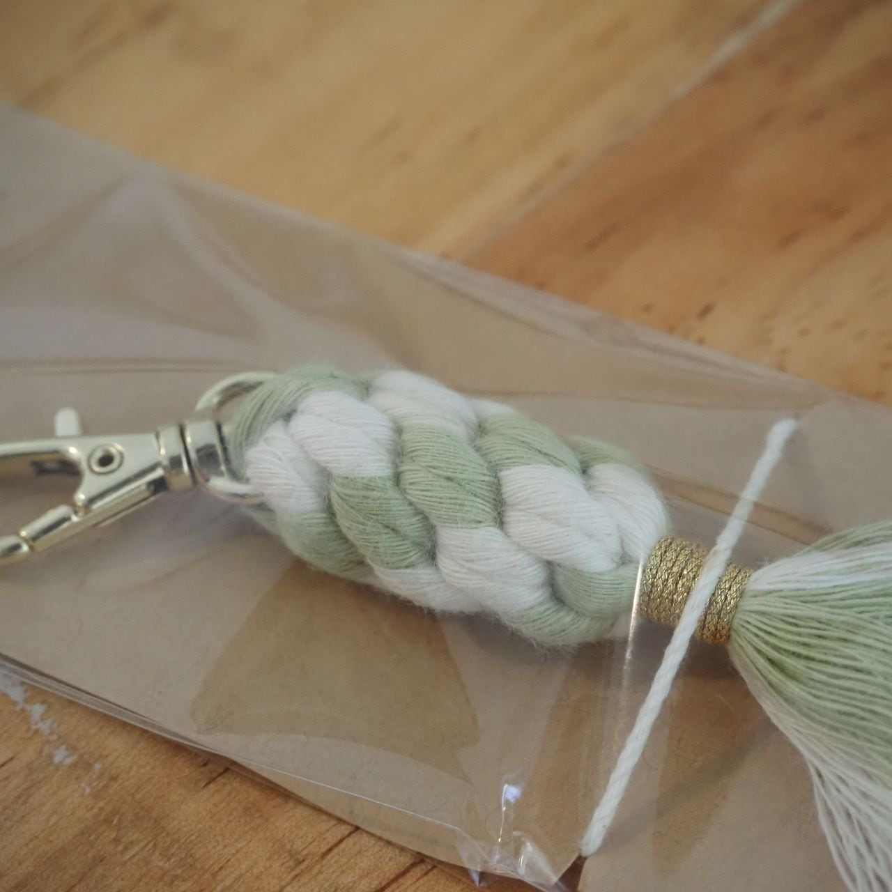 柔らかなオーガニックコットンコードで編まれたマクラメのキーホルダー。