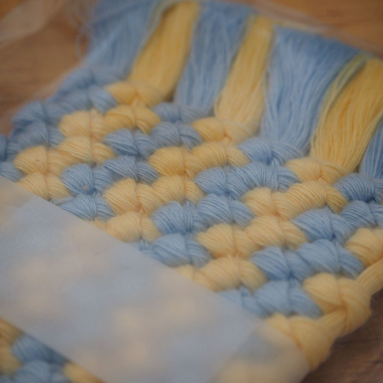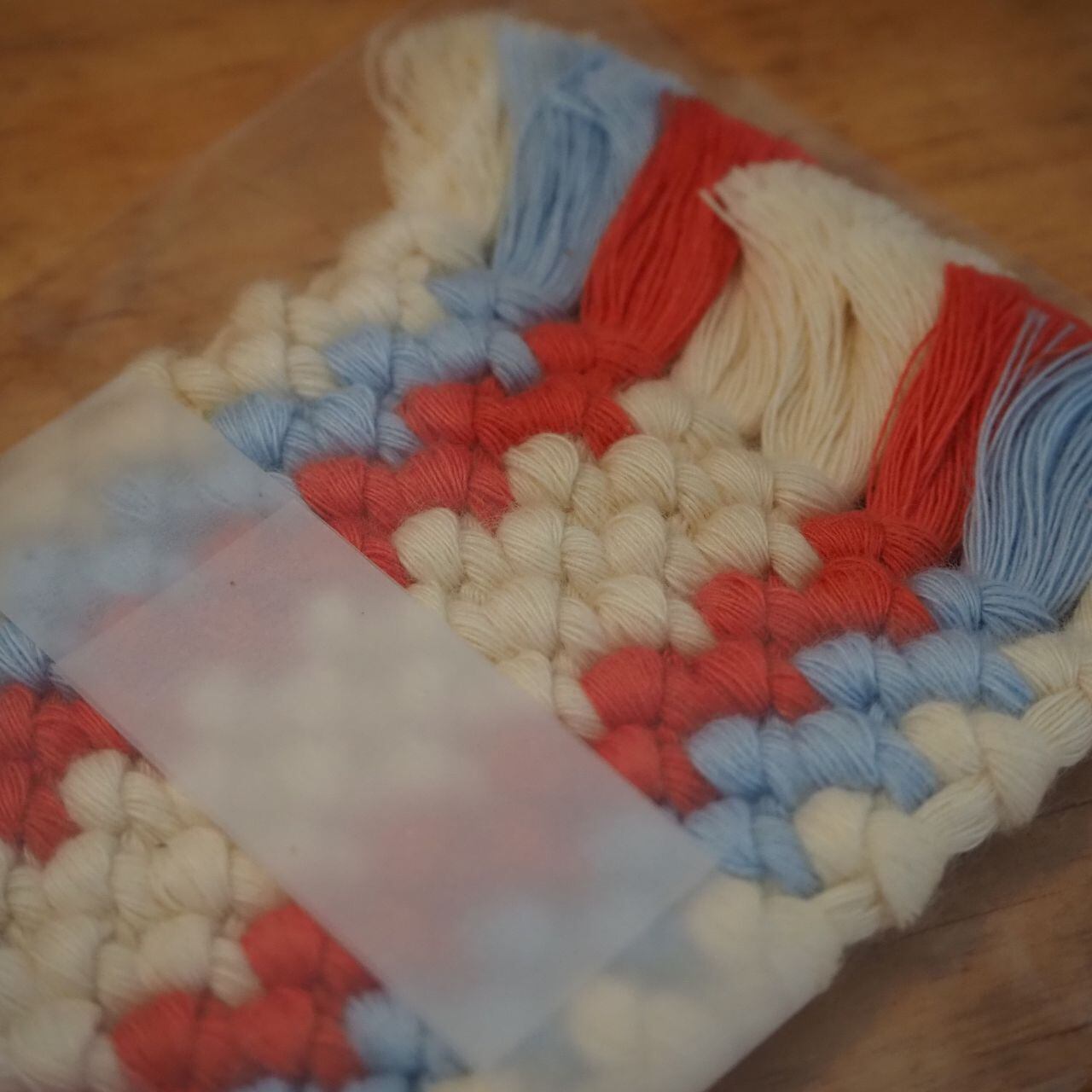 柔らかなオーガニックコットンコードで編まれたマクラメのコースター。