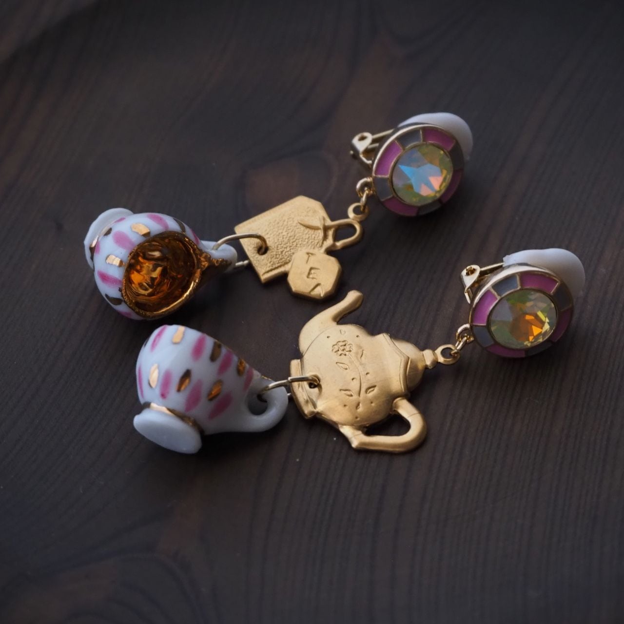 ひとつひとつ手作業で作られているティーカップのアクセサリー。