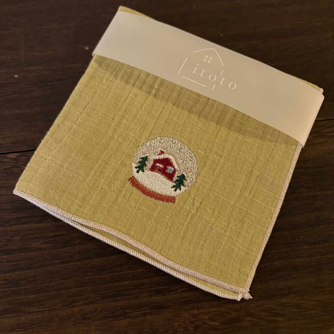 ふわふわとした優しい手触りの小ぶりなサイズ感にitotoのオリジナルのワンポイント刺繍が入ったガーゼハンカチ。