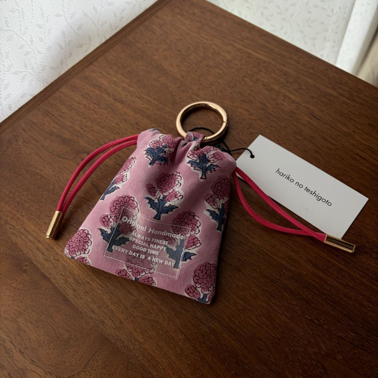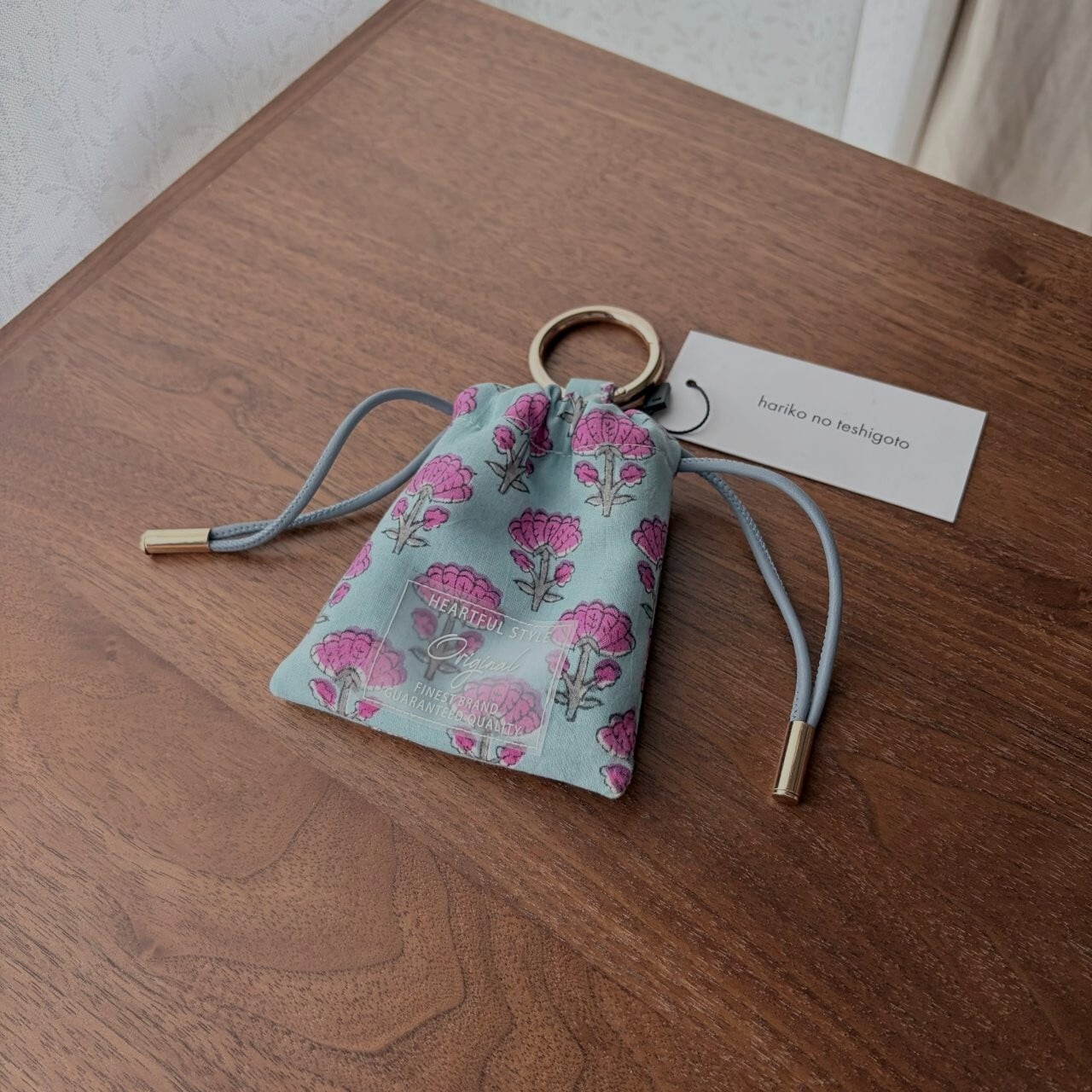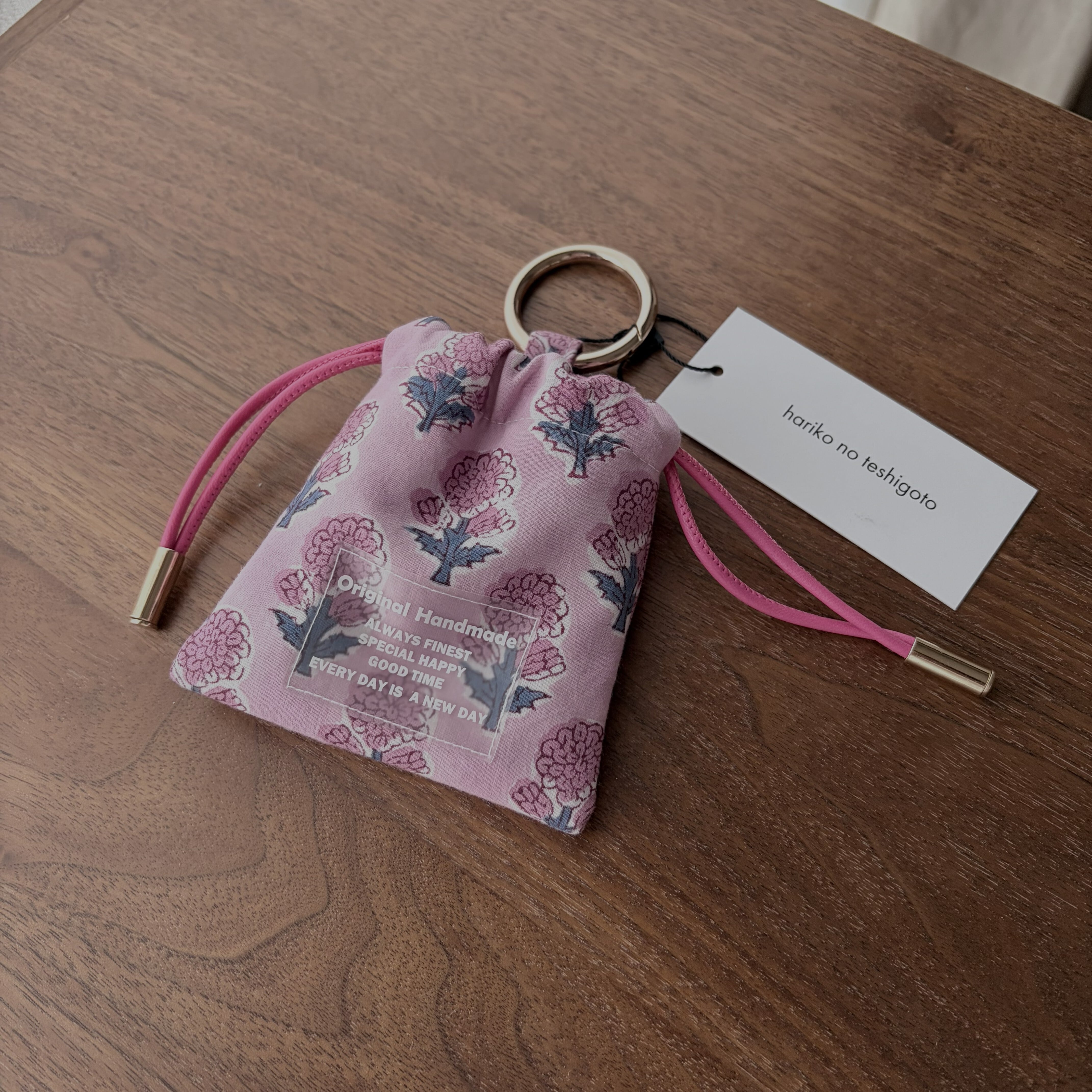 <はりこのてしごと> カラビナ付きポーチ巾着