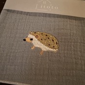 つぶらな瞳があいらしいハリネズミのモチーフ入りガーゼハンカチ。