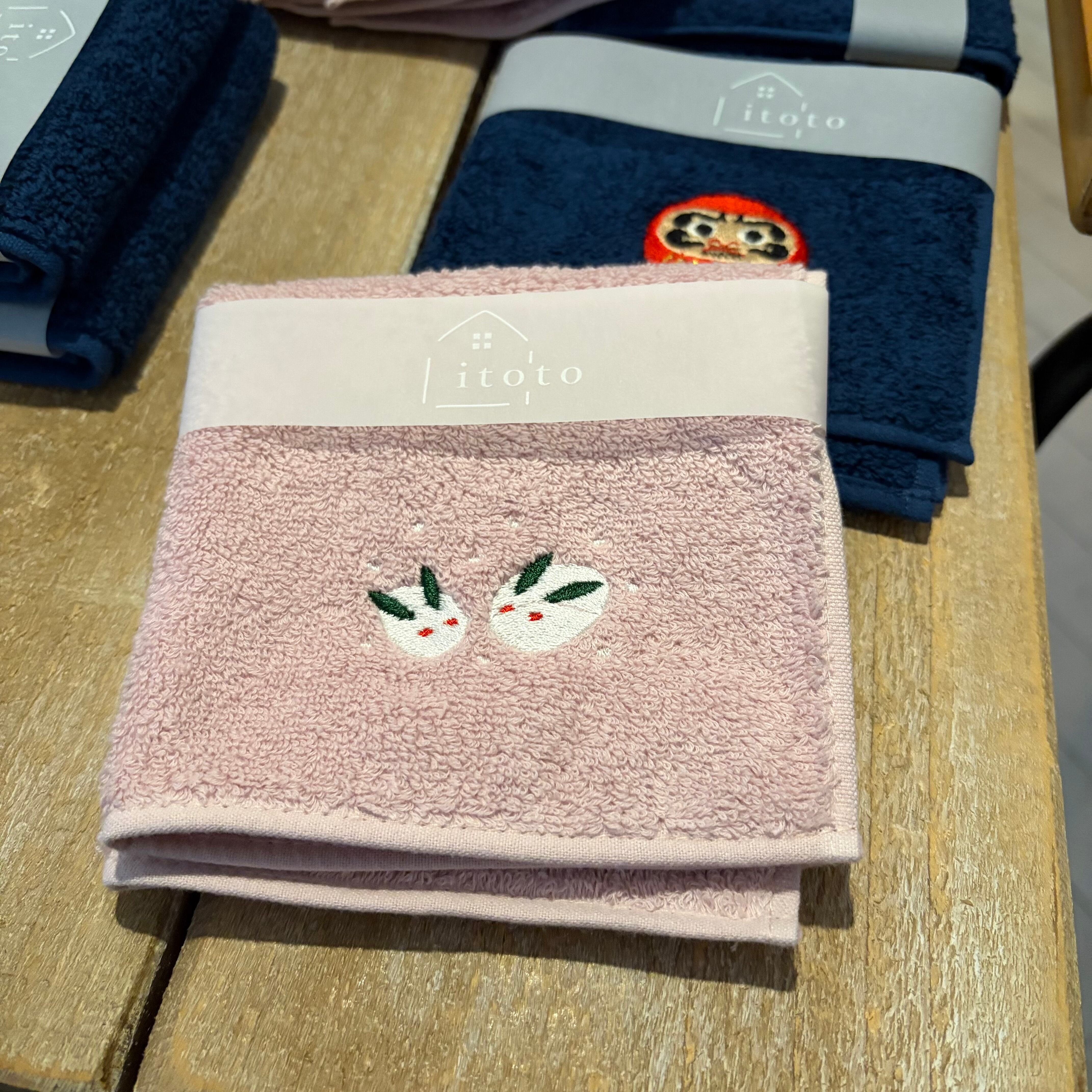 ふわふわとした優しい手触りの小ぶりなサイズ感の今治タオルにitotoのオリジナルのワンポイント刺繍が入ったタオルハンカチ。