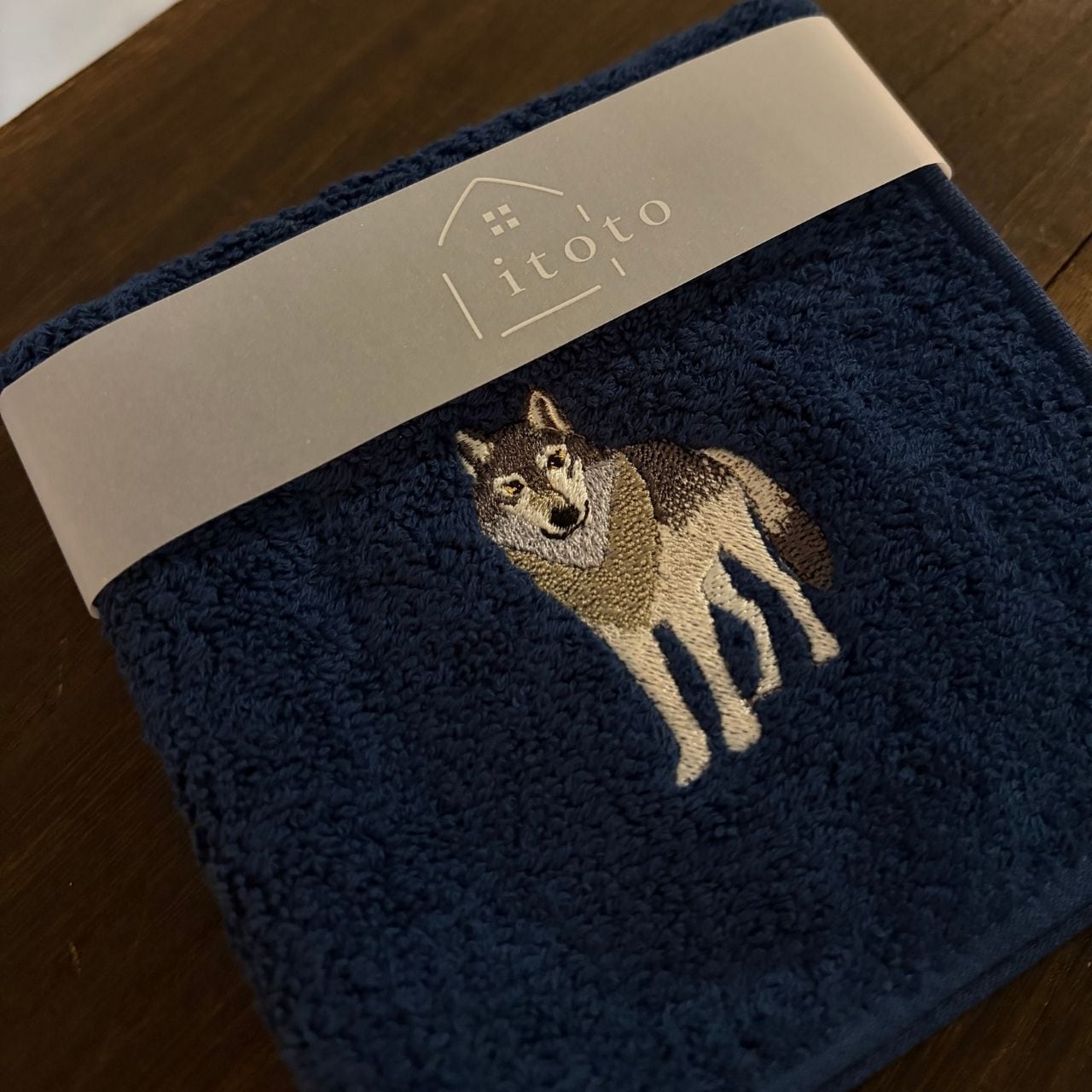 <itoto> タオルハンカチ オオカミ・ネイビー