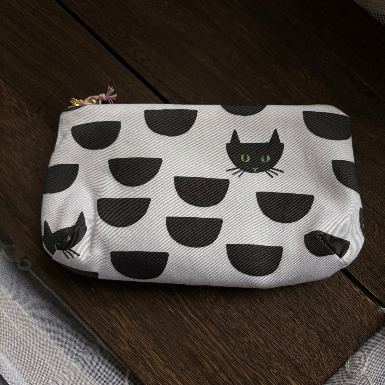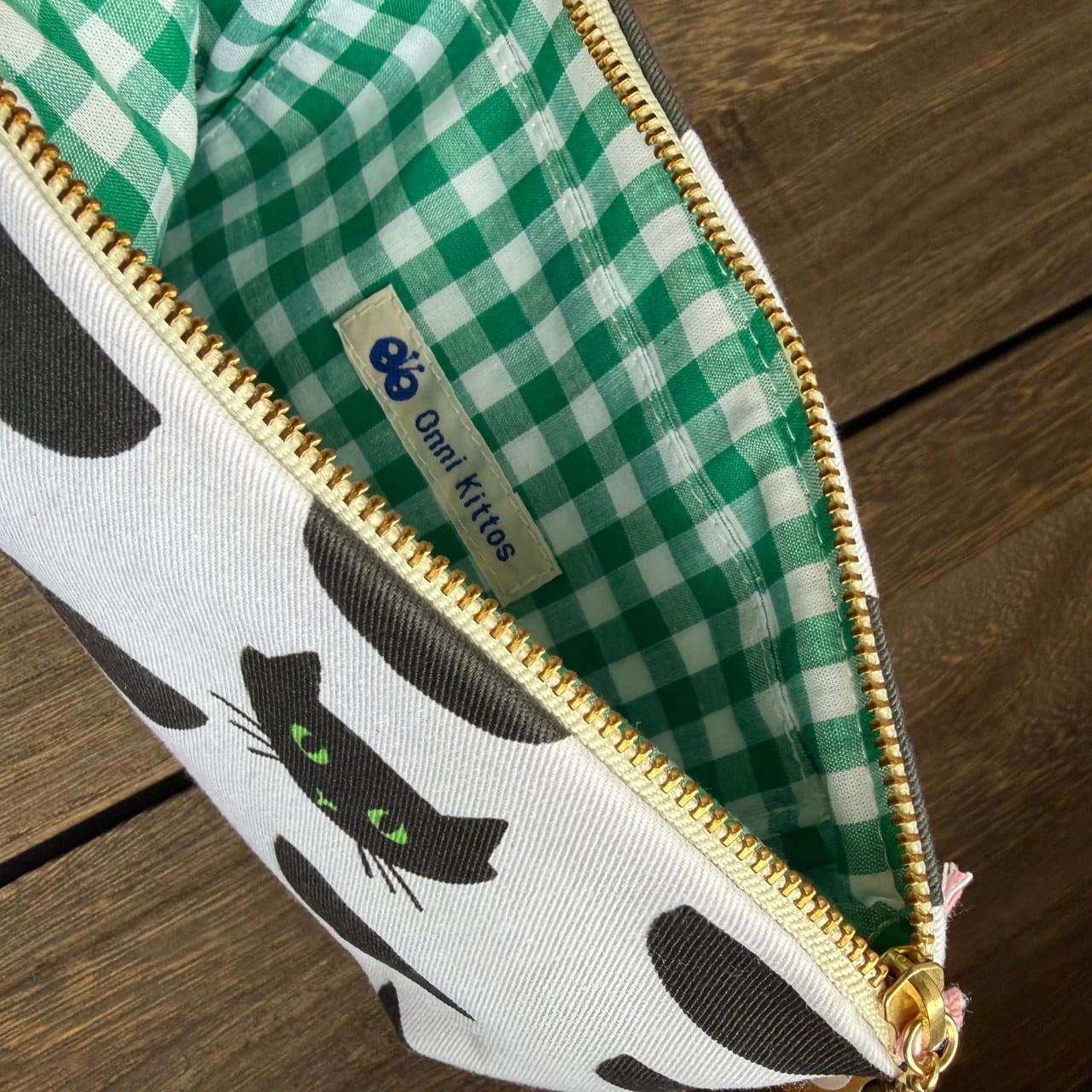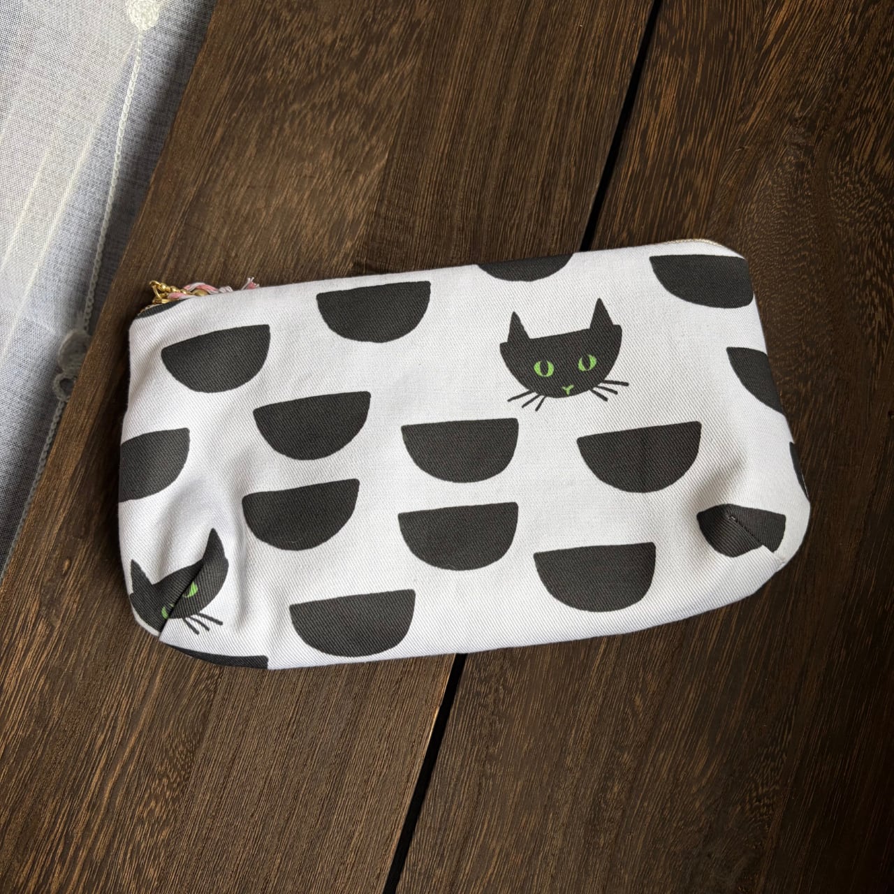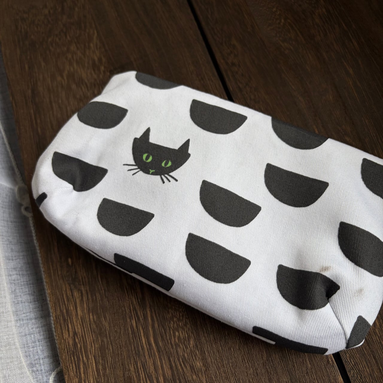 ふんわりとした手触りのモノトーンカラーのネコの生地がかわいいデザインです。