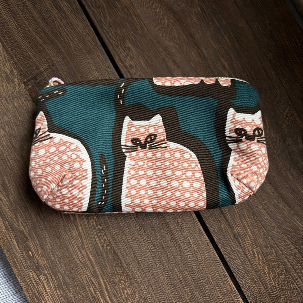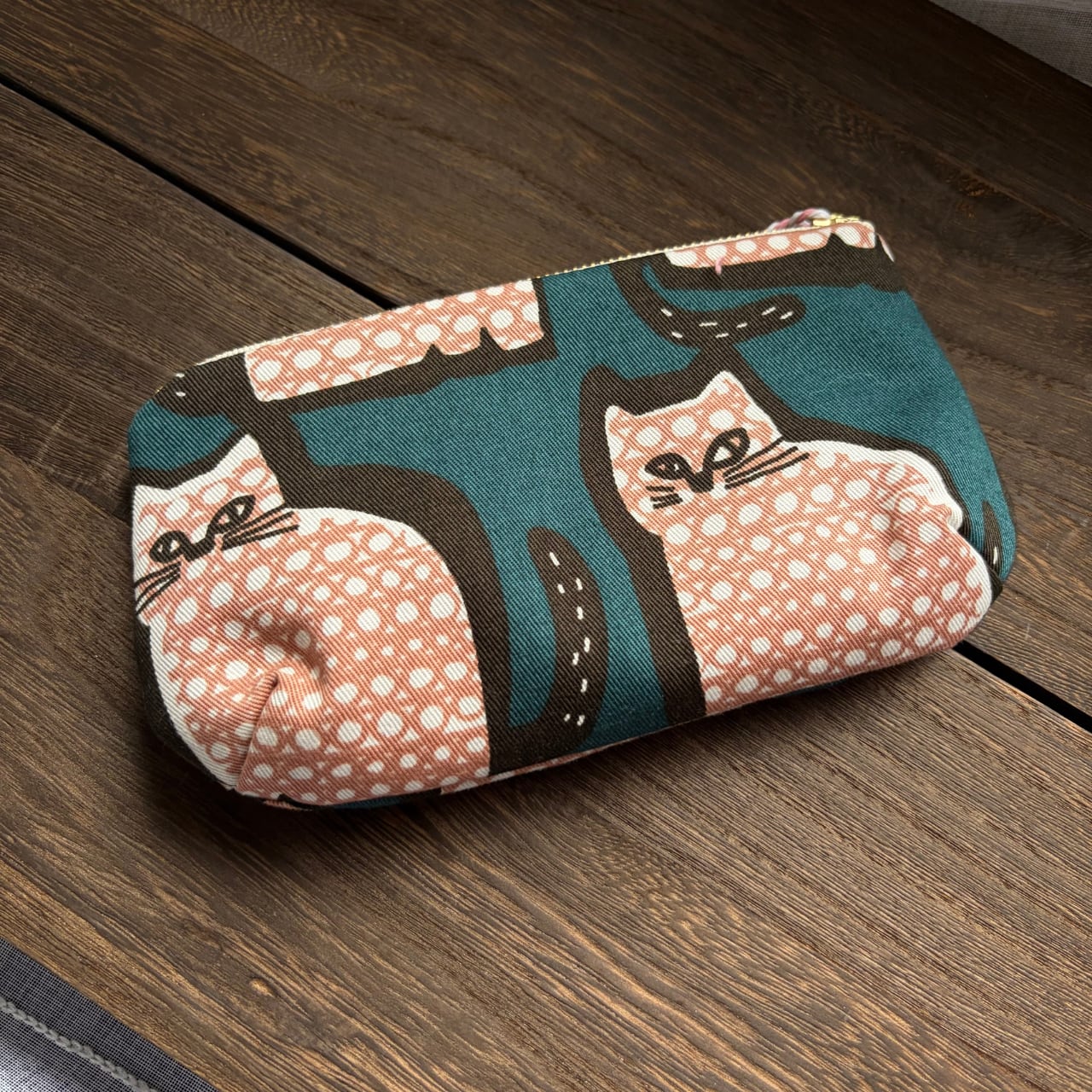 ふんわりとした手触りのクラシックなグリーンカラーのネコの生地がかわいいデザインです。