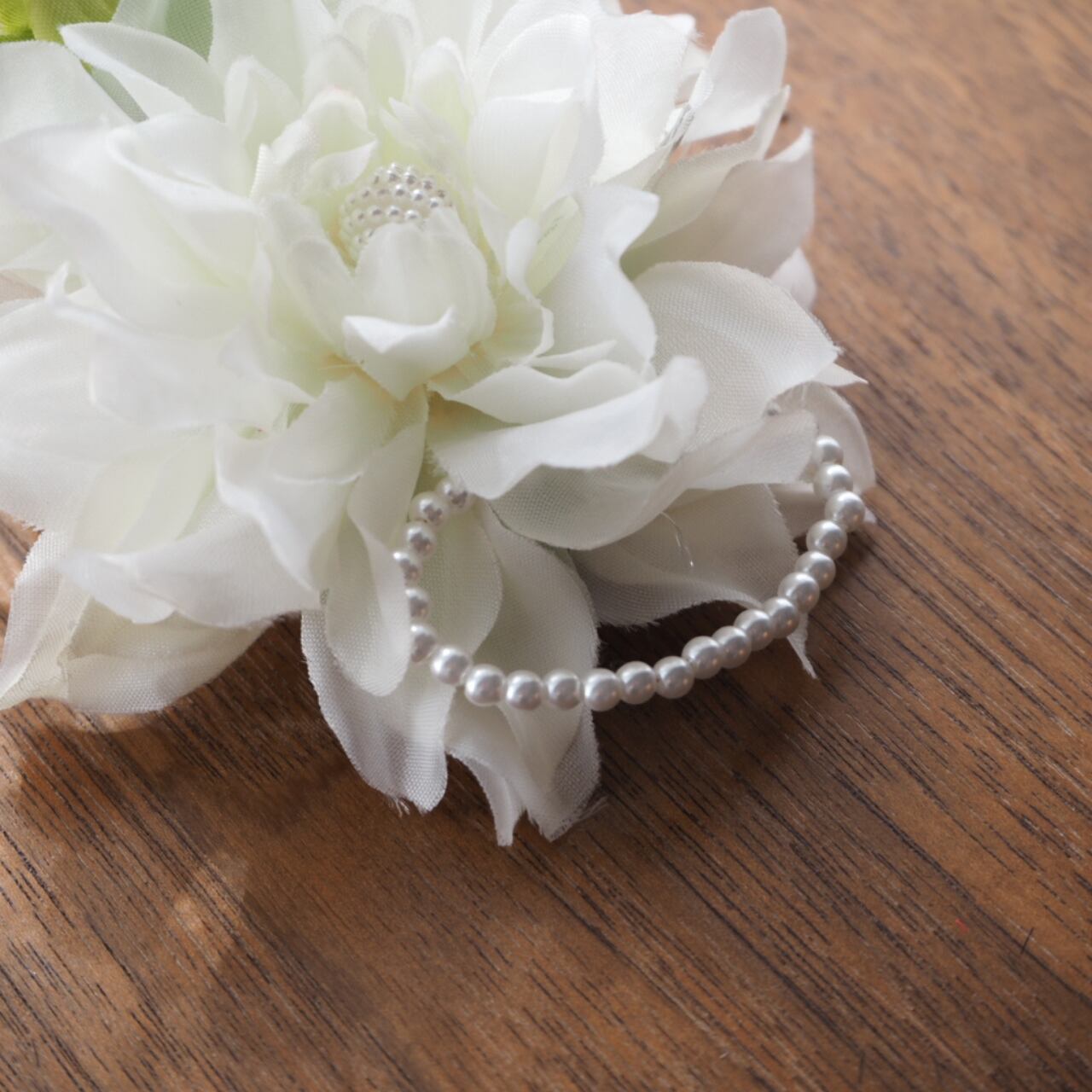 入学や卒業シーズン、謝恩会や結婚式などのスーツやドレスに添えるだけで一気に雰囲気が変わり手持ちのお洋服が華やかになります。